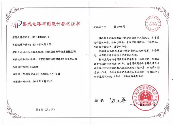 做到我国知识产权证局“集成式电源线路布图建议挂号”