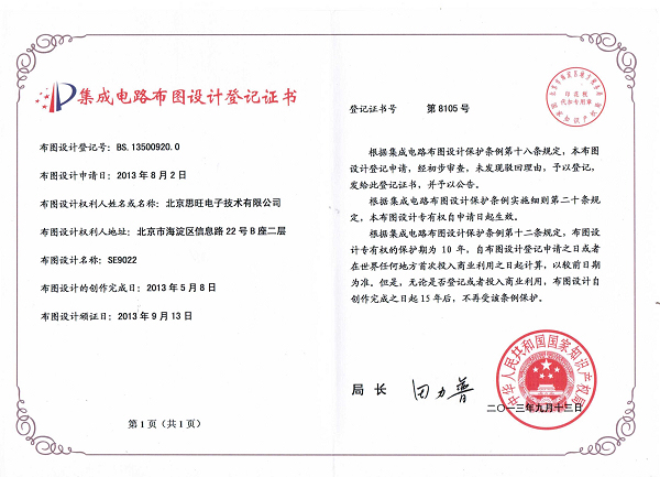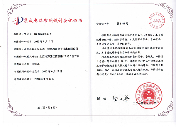 做到我国知识产权证局“集成式电源线路布图建议挂号”